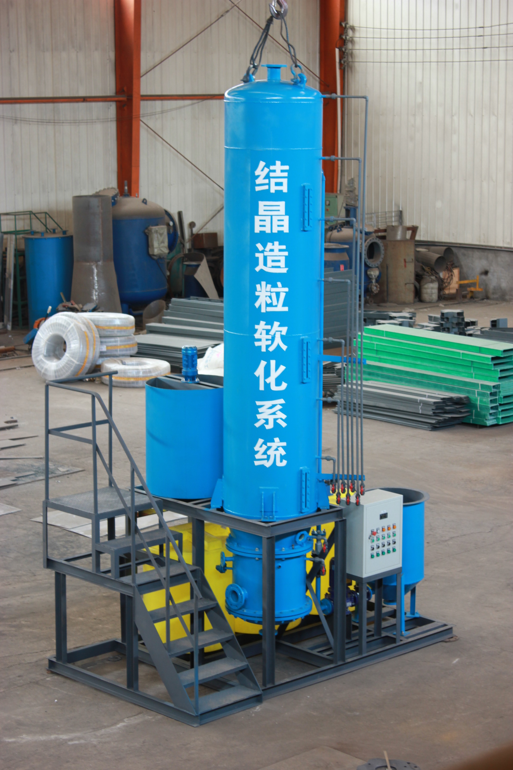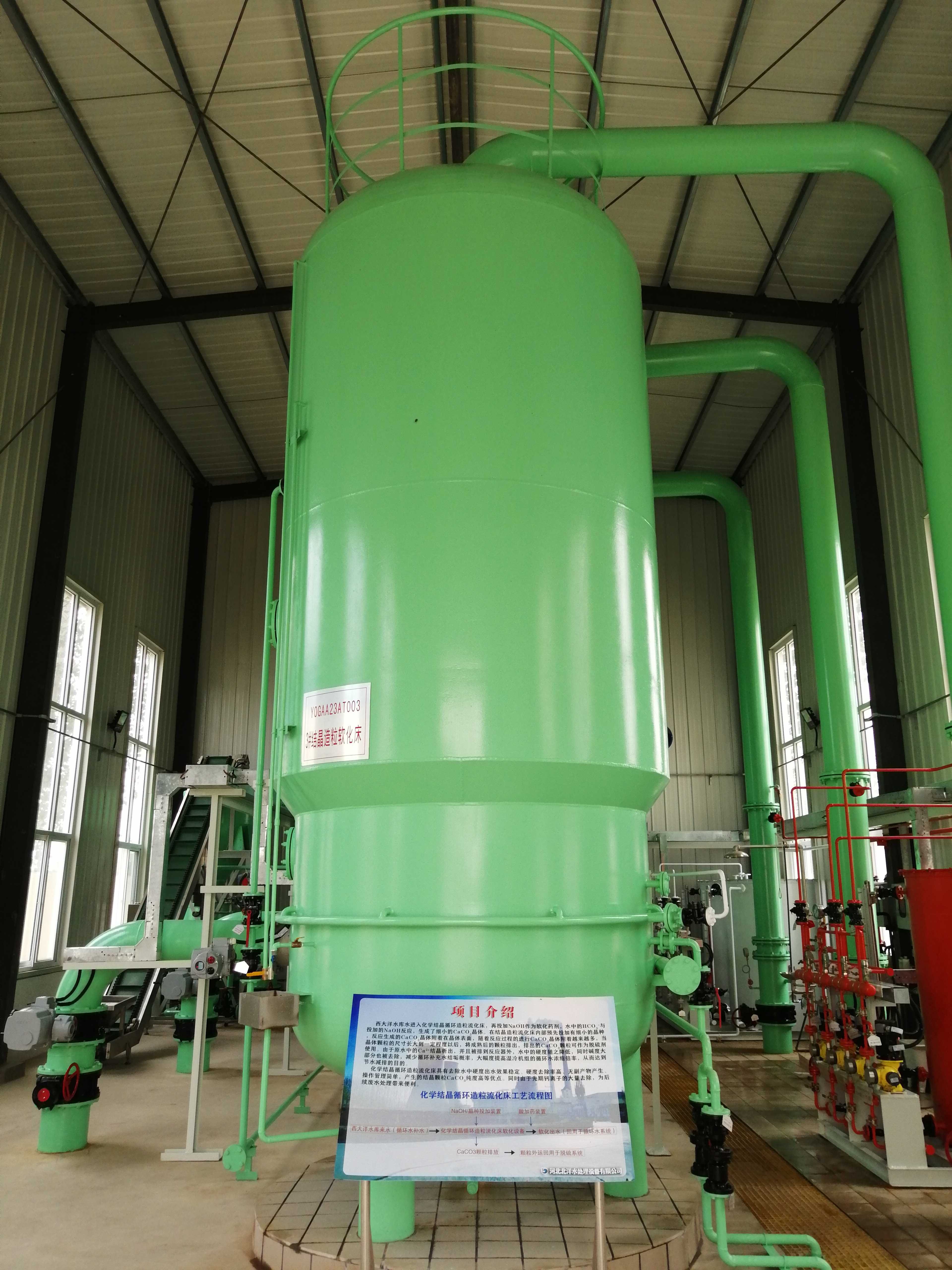 ◆ 系统组成设备少,操作运行简单,自动化控制。结晶造粒流化床软化工艺整套系统设备组成较少,占地面积小,自动化控制,无需太多人工操作,运行维护简单。
